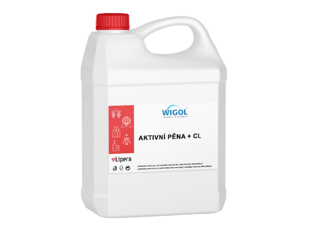 Kombinovaný čisticí a desinfekční prostředek jen pro průmyslové použití. Aktivní pěna CL je tekutý, alkalický koncentrát s aktivním chlorem k čištění pěnou v nápojovém a potravinářském průmyslu. Aktivní pěna CL se používá všeobecně k čištění a současné desinfekci stěn obložených obkladačkami, povrchů z ušlechtilé oceli, stropů a betonových ploch. Organické nečistoty jako plísně, bílkovinná oxidace a kvasinky se snadno odstraní, stejně tak mastné nečistoty a nečistoty od krve. Speciálně vybraná kombinace tenzidů vytváří po následném opláchnutí vodou lesklé povrchy.