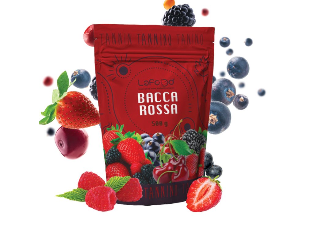 Lafood Bacca Rossa je přírodní tanin extrahovaný z francouzského dubu z oblasti Vendée (Cognac, Bordeaux) a z regionu Loiry. Získává se řemeslným procesem přírodní extrakce ve vodném prostředí. Použití vody s velmi nízkou vodivostí a absence chemických látek v procesu extrakce je zárukou přirozeného produktu.