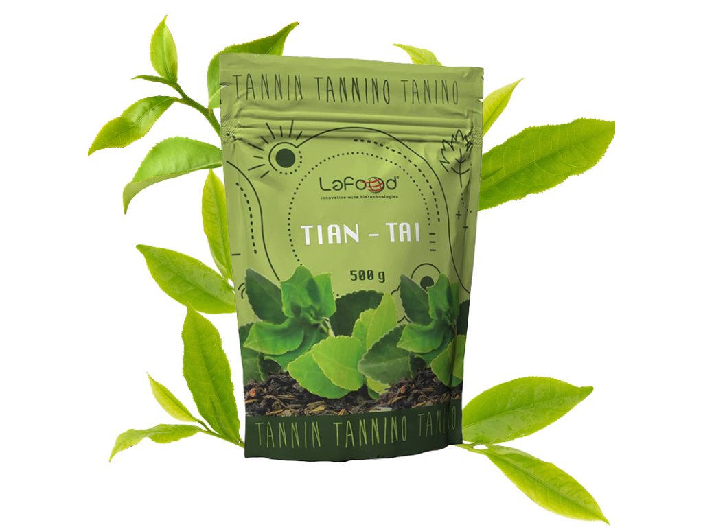 Lafood Tian Tai je přírodní katechinový tanin ze zeleného čaje, určený pro ochranu barvy, aromatiky a antioxidační stabilitu červených, bílých i růžových vín.